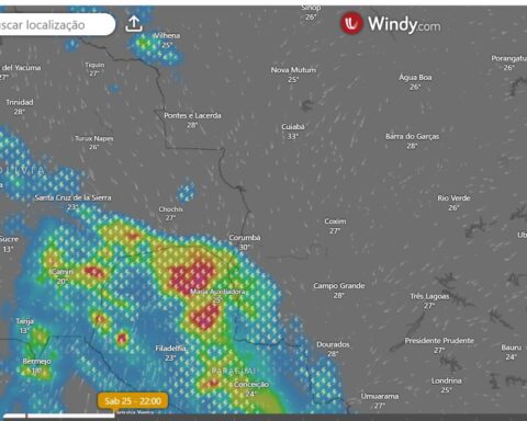 De acordo com a previsão do tempo divulgada via plataforma Windy, as chuvas devem chegar ao